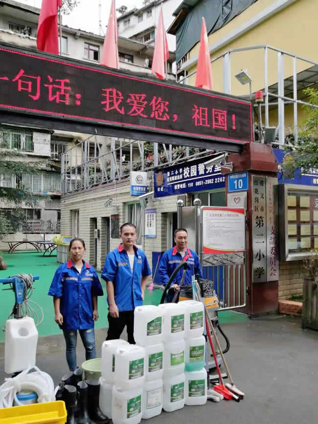 10月3日至5日,貴州世卿防滑工程有限公司(http://m.guizhousqfh.com/)在校領導親切關心之下走進貴州遵義市紅花崗區(qū)第二小學,利用國慶放假期間對校區(qū)食堂、廁所、教學樓走廊和通道等遇水易滑地面進行防滑處理,為孩子快樂成長提供更加安全可靠的學校環(huán)境,用實力與擔當禮獻祖國,效果滿意,得到學校領導及社會群眾一致認可!